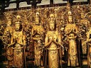 三十三間堂(蓮華王院)は、長寛2年(1164)に後白河上皇が平清盛に命じて創建されたが、建長元年(1249)に京都の大火により堂宇、仏像のほとんどを焼失したが、千手観音像千体仏のうち124体と二十八部衆立像が救出され、文永3年(1266)後嵯峨上皇によって復原されたのが現存の三十三間堂で、単層瓦葺入母屋造の国宝建造物である。