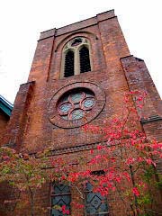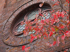同じ烏丸通りに、アメリカ人のガーディナーの設計で明治31年に建設された「聖アグネス協会聖堂」です。昭和60年に京都市指定有形文化財に指定されました。赤い煉瓦と紅葉がうまくマッチして秋を演出しているようです。