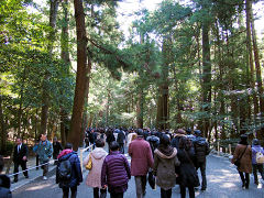 伊勢神宮に行ってきました。第二名神が出来たので2時間程で行くことができます。内宮へは規制されていて直接行けなくて離れた駐車場に誘導され、無料シャトルバスが運行されていて、それで20分ほどで内宮に行きました。予想通り参拝者で満員、どこもかしこも人人人・・・でした。その中を一団がやって来たので見ると鳩山由紀夫元首相でした。SP5名ほどに囲まれて参拝者に握手しながら通過していきました。