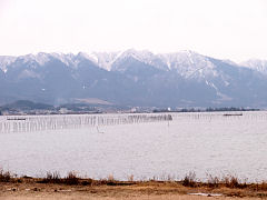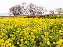 菜の花の黄色は暖かさを感じさせる色ですね。菜の花といえば与謝蕪村の「菜の花や 月は東に 日は西に」で、春爛漫という感じを受けますが、琵琶湖の湖面を渡ってくる風は大変冷たいものでした。比良山系は一面積雪で冬景色でした。
