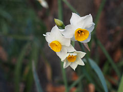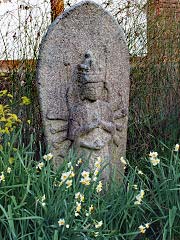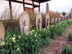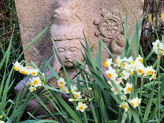 奈良の般若寺の水仙です。入るとすぐ目に入って来るのが、この石仏群とその前に咲く水仙です。普通の立像がほとんどですが、中に立て膝で手を頬に持ってきている艶めかしいポーズの石仏もありました。