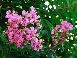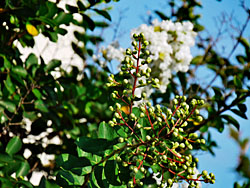 夏の花を代表する一つの「サルスベリ(百日紅)」が咲いています。殆どがピンク色ですが、白色のサルスベリが咲いていました。