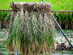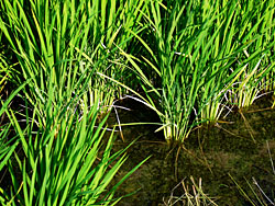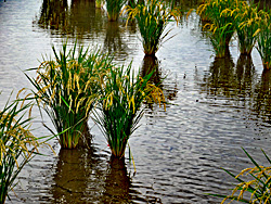 稲刈りが本格的に始まりましたが、まだ、このように水を湛えている田圃がまだありました。稲が瀬戸内海の島のようになっています。何故このようになったのでしょうか。