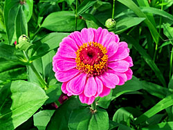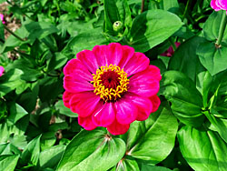 メキシコ原産でキク科の「ヒャクニチソウ(百日草)」が咲いています。写真右は、百日草に似ていますが、原産地も科目も同じの「ダリア」です。