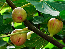 京都府城陽市特産の「無花果(イチジク)」が、色付き収穫時期を迎えています。(写真左) 「柘榴(ザクロ)」も色付き始めました。(写真中央) 温州ミカンは、まだ青々としています。