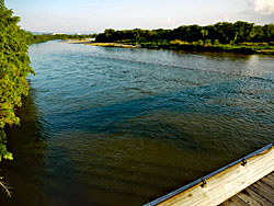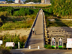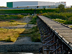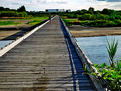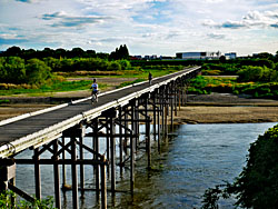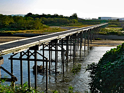 橋を渡って、八幡市側から見た「流れ橋(上津屋橋)」です。八幡市側からは、川の流れを見ることはできません。