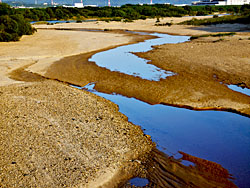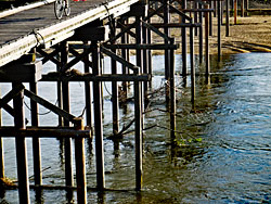 台風10号通過後の「流れ橋」です。 明らかに水量が増えていました。いつもなら砂地だったところに、川が出来ていました。