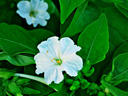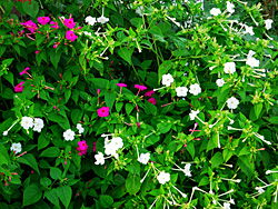 「オシロイバナ(白粉花)」が咲いていました。 夏の日の夕方に咲き出す花ですね。夏の名残りの花が咲いていました。