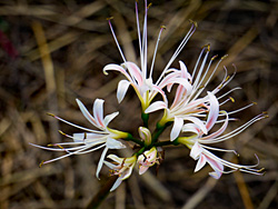 今年の9月は異常に暑く、本来ならすでに咲いている「彼岸花(ヒガンバナ)」を見ることは無かったのですが、今日、木津川の土手で見つけました。それも、定番の「赤」そして「白」、「ピンク」の三色を見ることが出来ました。