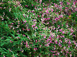 初秋の花の一つの「萩(はぎ)」が、咲いていました。 本来なら9月に咲く花ですから、今年の猛暑で遅れているようです。 白い彼岸花も咲いていました。