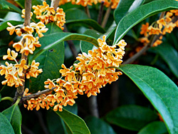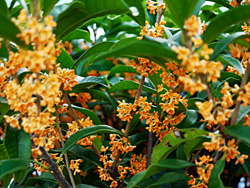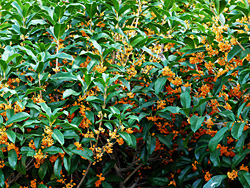「キンモクセイ(金木犀)」も咲いています。甘い香りを放ち「ジンチョウゲ(沈丁花)」、「クチナシ(梔子)」と共に、日本の三大芳香木になっています。1970年代から1990年代かけて、トイレの芳香剤として販売されていました。水洗トイレが完備された現在では、その役目は終えています。