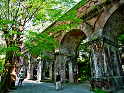 南禅寺周辺その8です。 南禅寺と言えば、ここ水路閣ですね。全長約93m、幅約4mで、古代ローマの水道橋を模して造られたとか。明治14年(1881)に着工され明治23年(1890)に竣工しました。テレビドラマに、よく登場するロケ地です。 (動 画)