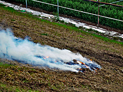 今年は11月7日が「立冬」、焚き火が恋しい時期になってきました。「垣根の 垣根の まがりかど たき火だ たき火だ おちばたき・・・」童謡の「たきび」です。今では、歌われることがない童謡になっています。平成13年4月から「廃棄物の処理及び清掃に関する法律」で焚き火等は原則として禁止されています。昔は町内の路地で、町内の子供、大人が落葉を燃やして、焼き芋をして皆で食べたものです。昭和は遠くになりました。木津川の土手で除草を燃やしていました。焚き火というイメージではありませんね。 (動 画)