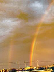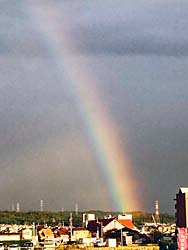 昨日の夕方、虹を見ることができました。夕日に染まる虹も見ることができました。夕日に染まる虹は、初めての事です。二重に虹ができています。これも珍しい。ヨルガオ(夜顔)が咲いていました。