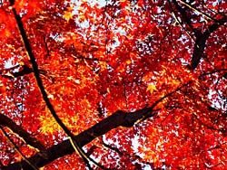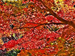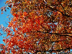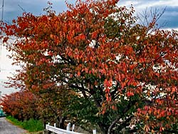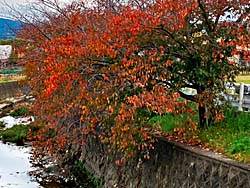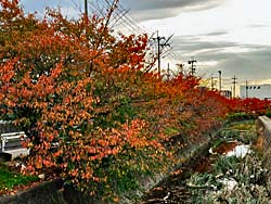 近くを流れる川沿いに、ソメイヨシノの桜並木があります。今、紅葉真っ盛りです。