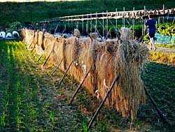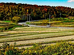 稲刈りが終わった田圃には、今は見かけなくなった「稲掛け」がありました。刈り取った後には、芽を出しています。そのまま放置すれば、米が出来な勢いです。