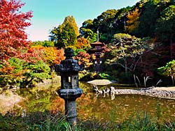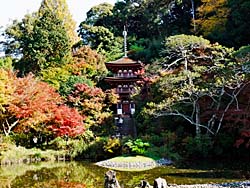 浄瑠璃寺その4です。 山門を入ると目に飛び込んで来るのが、池の対岸にある国宝の三重塔です。周囲の紅葉に囲まれて、赤い三重塔が映えます。