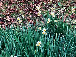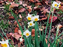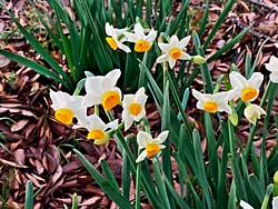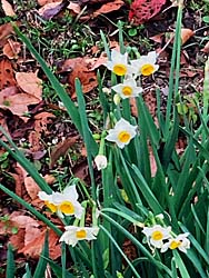 木津川桜並木のソメイヨシノの根元には、春にはツツジ、雪柳、秋には彼岸花が咲きますが、今は冬の花の水仙(スイセン)が咲き出しました。
