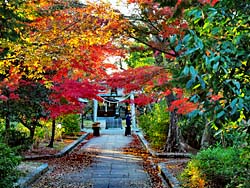 流れ橋の八幡市側にある「石田神社」の参道の紅葉です。きれいに、紅葉していました。