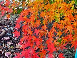 左から、紫色の「紫式部」、赤色の「南天」、黄色の「銀杏」と、秋の色とりどりです。
