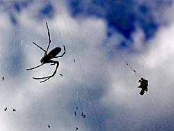 京都府木津川市加茂町の、浄瑠璃寺や岩船寺がある地域を「当尾の里(とおののさと)」と呼ばれています。色とりどりに紅葉しているのを、蜘蛛も青空を背景に眺めていました。