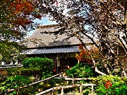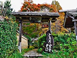 当尾の里、その2です。 麺類のお店がありました。土塀が続く古民家の店でした。