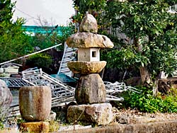 垣根越しの石灯籠のその5です。写真中央と右は、庭先でなく単なる広場にありました。