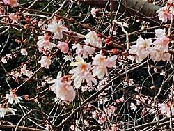 木津川桜並木の根元に咲いている「スイセン(水仙)」が、見頃を迎えています。近鉄・久津川駅の傍にある「平井神社」には、不断桜が見頃です。