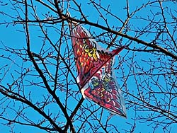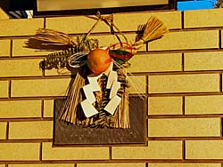木津川の土手で、連凧をあげている人がいました。お正月の光景です。同じ凧が枝に引っ掛かっていました。これも正月の光景です。そして、玄関に注連縄を飾る家は、少なくなってきました。