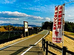 木津川のサイクリングロードに「歓迎 京都木津川マラソン大会」という幟が風にはためいていました。2月5日に大会があるようです。この頃は、地元の住民マラソンが各地で行われているようです。