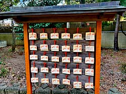 石仏にミカンが供えてありました。正月の名残の光景です。 流れ橋を渡ったところにある「石田神社」です。絵馬は全て虎から兎に変わっていました。