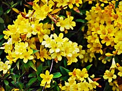 春の暖かさを感じさせる、黄色の花を撮しました。左から「カロライナジャスミン」、「ミモザ」、「レンギョウ」の黄色の花々です。