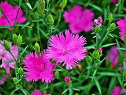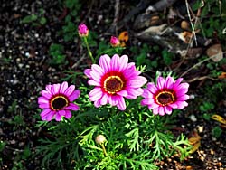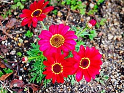 左から、ナデシコ科の「セキチク(石竹)」です。 ハマミズナ科の「マツバギク(松葉菊)」です。 そして、キキョウ科の「ロベリア」です。