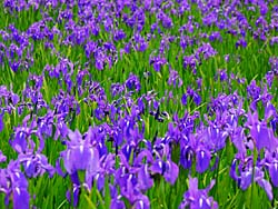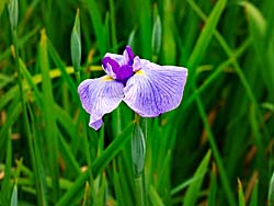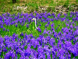 城陽市観音堂に、アヤメ科の「カキツバタ(杜若)」が咲いています。薄紫色の花が一面に広がっていました。サギも、カキツバタを眺めていました。