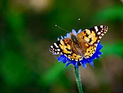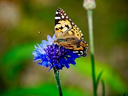 「ちょうちょう ちょうちょう 菜の葉にとまれ ・・・・」花の周りを飛んでいる蝶々を撮しました。カメラを近づけると、すぐに飛び立つのでなかなか厄介なものです。 ところで蝶の数え方ですが、「一匹二匹・・・」とか「一羽二羽・・・」とか数えるのではなく、「一頭二頭・・・」と数えます。知っていましたか。