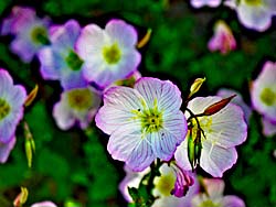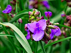 道端に咲いていた、「ヒルザキツキミソウ(昼咲き月見草)」(写真左)です。「ムラサキツユグサ(紫露草)」(写真中央)です。「フウロソウ(風露草)」(写真右)です。