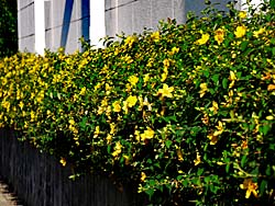 ある会社の生け垣に、「キンシバイ(金糸梅)」が植えられています。 この黄金色の花は、初夏から夏へと移り変わる季節を知らせています。