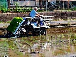 お茶摘みも終わりに近づき、今は田植えの準備が行われています。耕耘機が走り回って、田圃を耕していました。耕した田圃には、水を入れています。苗代も準備されて、田植えを待っていました。