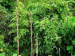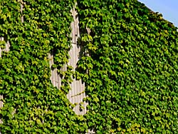緑色が映える今日この頃です。 左から、ツタが絡む建物、笹と竹の子、モミジです。