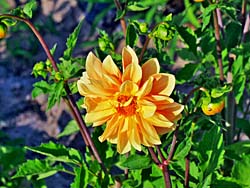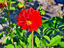 道端で咲いていた、ナデシコ科の「カワラナデシコ」です。(写真左) キク科の「ダリア」です。ダリアは、豪華で力強く咲く花です。(写真中央・右)