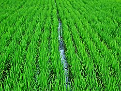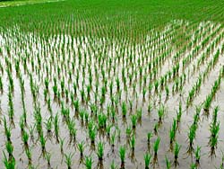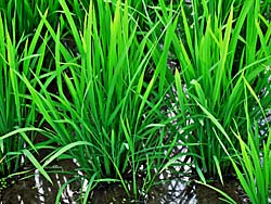田圃の稲が、順調に育ってきています。浮き草も発生しています。