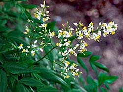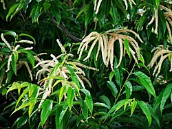 見上げると、「クリ(栗)」の花が咲いていました。(写真左) 足下には、特有の匂いがする「ドクダミ(蕺)」が咲いています。(写真中央) 目の前には「ナンテン(南天)」の花がありました。(写真右)