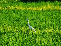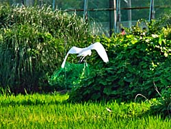 「アゲハチョウ」が2頭(ペア?)絡み合って飛んでいました。 「サギ」が田園の中を歩いていました。 そして、飛び立ったところを撮しました。