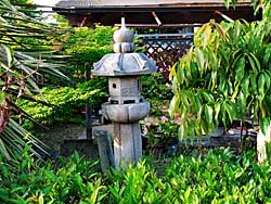 城陽市上津屋地区の、民家のほどんどの庭には、石灯籠が置かれています。どの民家も和風の庭が造られていますので、石灯籠があるのでしょうが、大きな灯籠がほどんどです。垣根越しに撮しました。