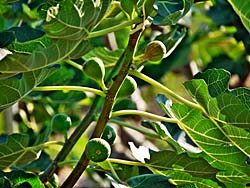 城陽特産の「イチジク(無花果)」が、小さい青い実を付けていました。更に大きくなり茶色に熟すには、もう少し時間が掛かるようです。