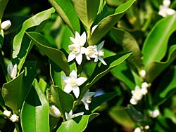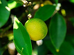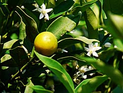 ウンシュウミカン(温州蜜柑)の花が咲き、青い小さな実を付けていました。