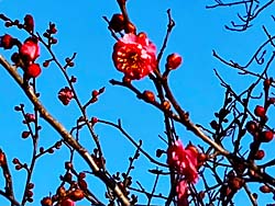 児童公園に、一本の梅の木が花を、咲かせていました。