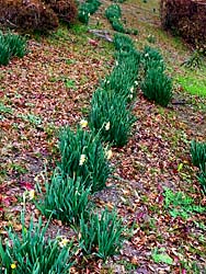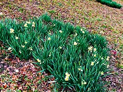 木津川堤・寺田地区、百本の桜並木の根元には、水仙が咲いています。段々その花が増えてきました。見頃はまだ先のようです。