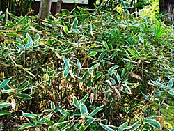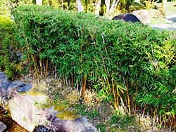 京都府八幡市にある「松花堂庭園」その9です。 「ホウオウチク(鳳凰竹)」で、生け垣が造られていました。竹の生け垣は、あまり見かけません。調べると、目隠しに最適な竹だそうですが、常に剪定しないとこのように密集しないとか。