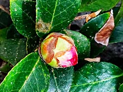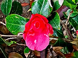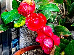 我が家の鉢植えの椿が咲き出しました。 八重咲きで、特徴のある咲き方をします。
